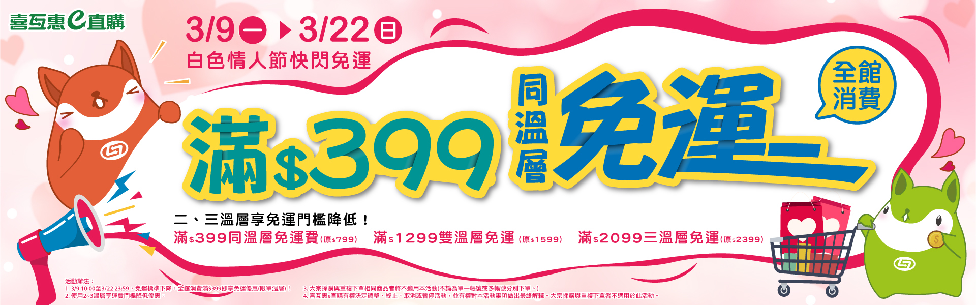 3/9~3/22 $399滿額即享有同溫層免運優惠!